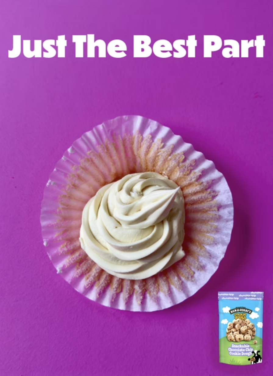 These are three ad campaigns I created for Ben & Jerry's Cookie Dough Bites. The concept highlights ‘just the best part’ of various desserts—just like these bites deliver the best part of cookie dough ice cream, without the ice cream