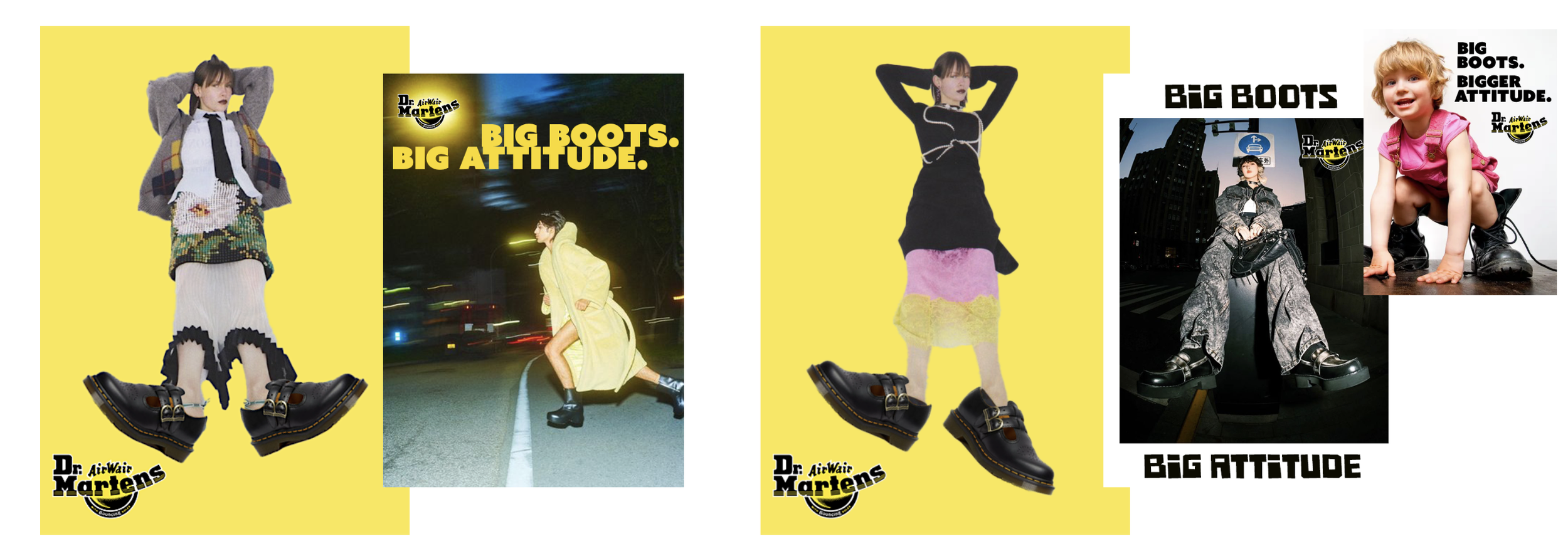 Big Boots, Big Attitude was a campaign I created for Dr. Martens that celebrates bold self-expression through fashion. The concept highlights the iconic, chunky silhouette of Dr. Martens boots as more than just footwear…they’re a statement. Featuring fashion forward individuals with unapologetic style, the project showcases how big boots can reflect even bigger confidence. From streetwear to high fashion, the campaign repositions Dr. Martens as not only durable and tough, but also trendsetting and expressive.