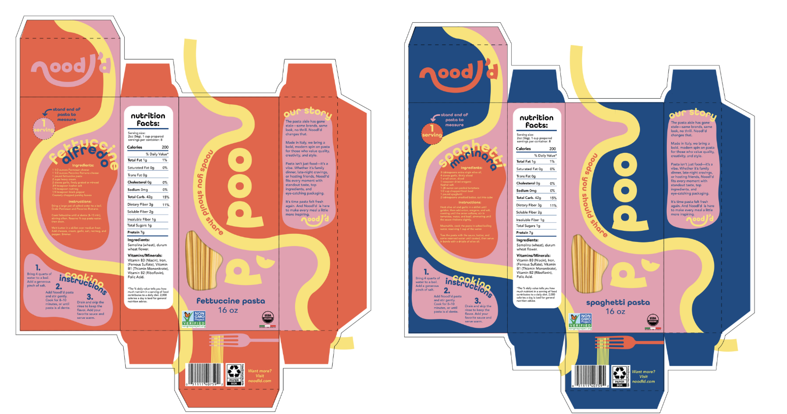 I worked with a team of three to create Noodl’d, a modern pasta brand designed to stand out in a traditional market. We built the brand identity and packaging for people who value quality, creativity, and food as an experience. This project taught me how to collaborate, balance ideas, and build a cohesive visual system